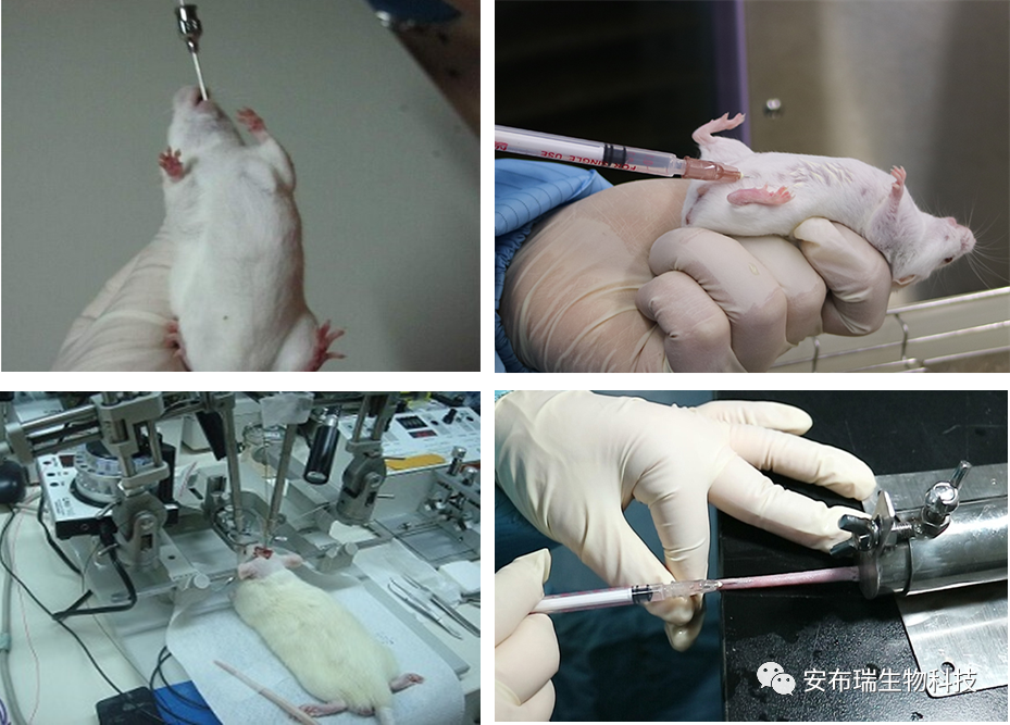 根据脑立体图谱调解定位仪坐标,精确注射药物进入大脑脑室或者大脑特定组织,如海马体,黑质等。